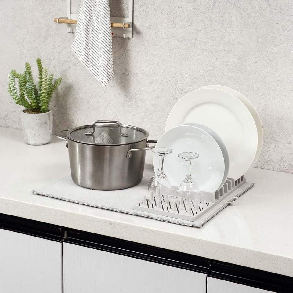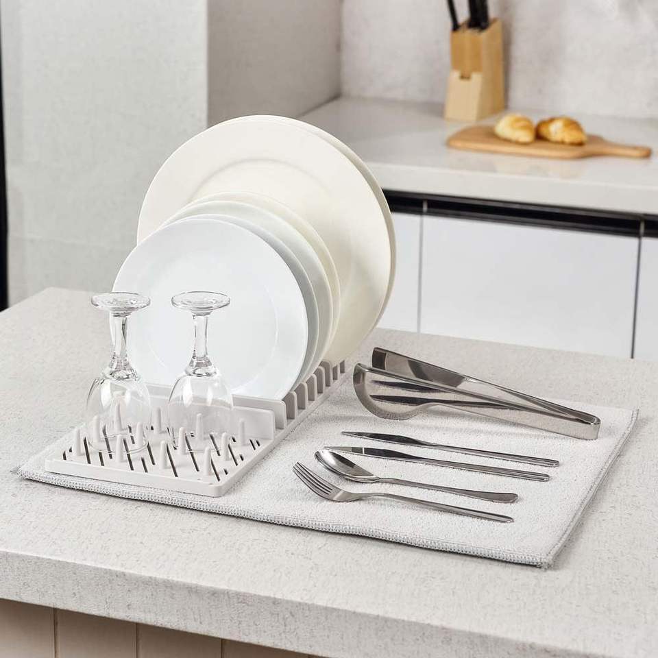 Escurridor de Platos de Microfibra PP, Tapete para Secar Platos, Diseño Ligero que Ahorra Espacio, Plegable, Soporte de Almacenamiento de un Solo Nivel