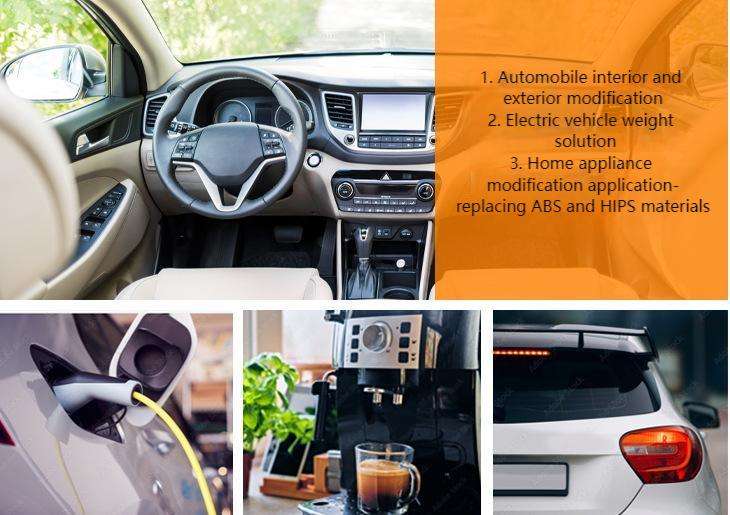 Componentes de electrodomésticos, Piezas automotrices, Piezas automotrices, Aplicaciones automotrices, Propósito generalAplicación