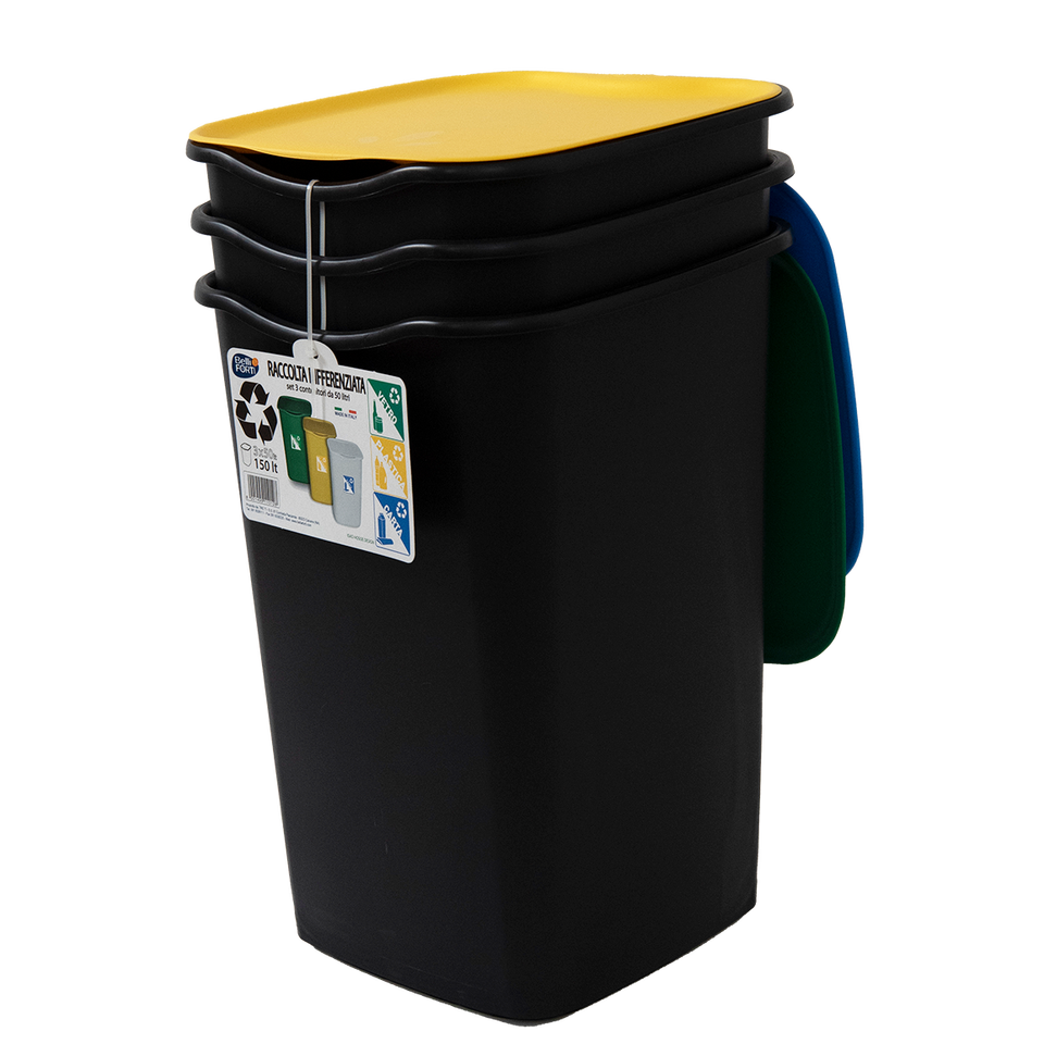 Juego de 3 Contenedores de Reciclaje de PP con Tapas de 50 Litros para la Separación de Residuos