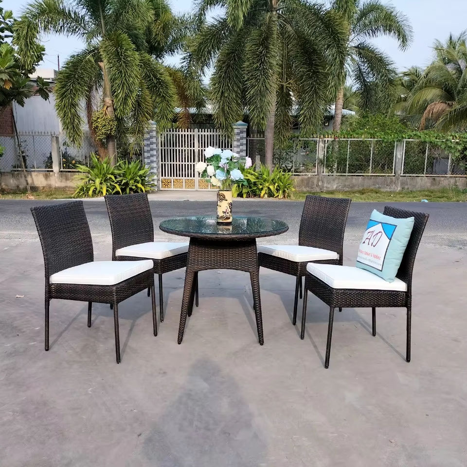 PRCF-033 Juego de Comedor de Ratán Sintético de Lujo Moderno para 6 Personas, para Jardín, Patio, Balcón, Hotel y Dormitorio