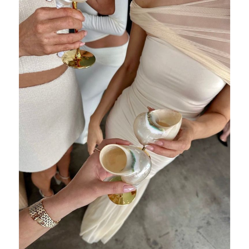 CRISTAL DE CONCHA ARTESANA PREMIUM, LA MEJOR COPA DE VINO PARA UNA DECORACIÓN DE EVENTOS DE LUJO.