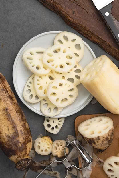 Contenido:Hecho de raíces de loto recién cosechadas, limpiado