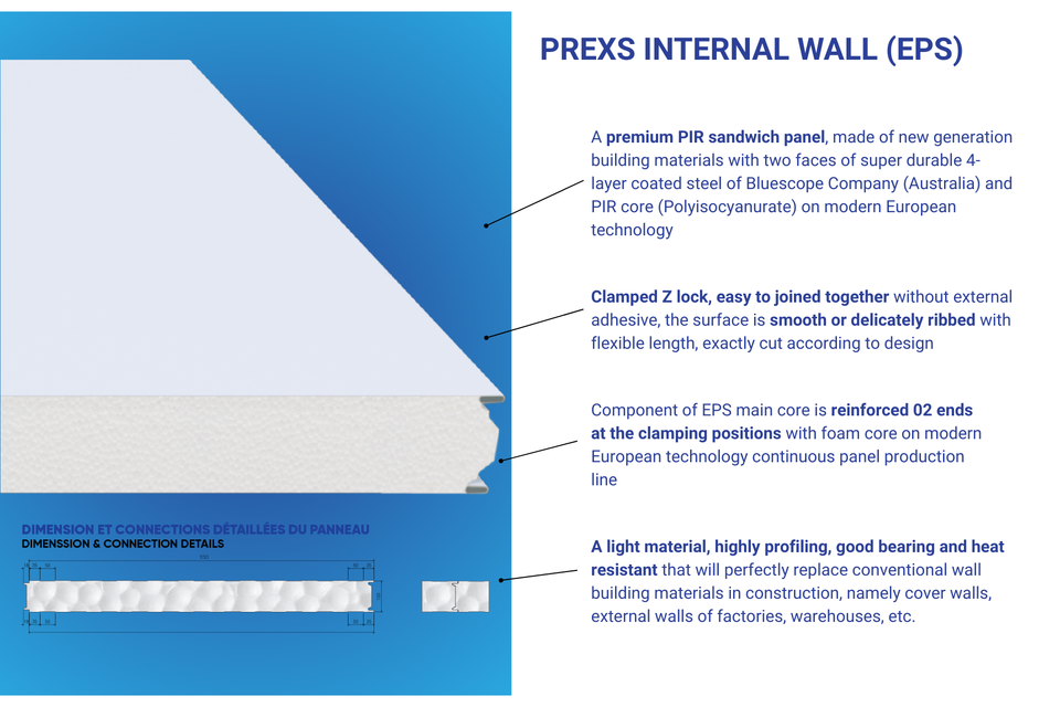 Panel Sándwich EPS PREXS, Pared Interior, Instalación Rápida, Solución Económica para Construcción Prefabricada de Almacenes
