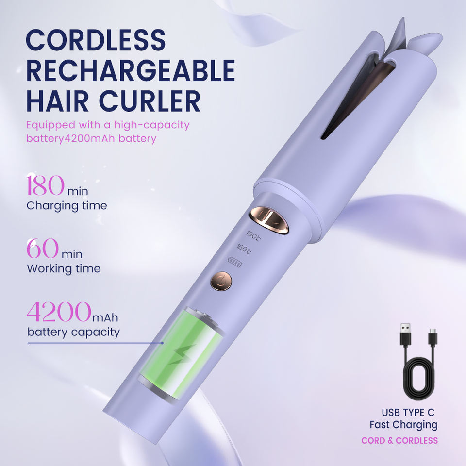 PRITECH, rizador automático recargable con ondas de playa de calentamiento rápido, rizador de pelo giratorio automático inalámbrico con Batería grande para viajes