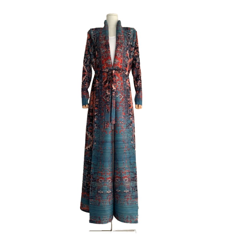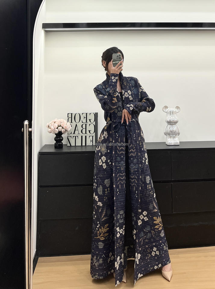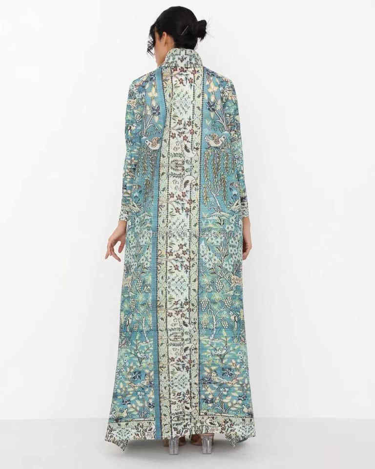 PROMISTAR modesto plisado largo cortavientos chaqueta otoño poliéster bata estampado árabe mujer capa Oriente Medio musulmán nuevo Abaya