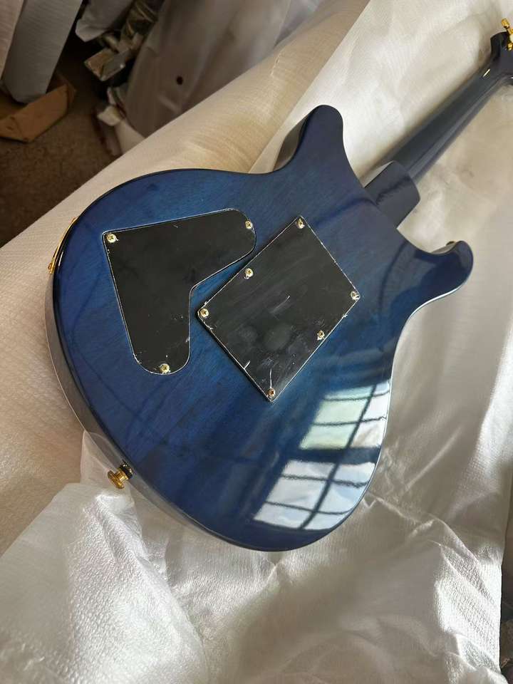 Guitarra Personalizada Prs, Color Azul Brillante, Cuerpo Semihueco, Orificios en Forma de F, Herrajes Dorados, Envío Rápido