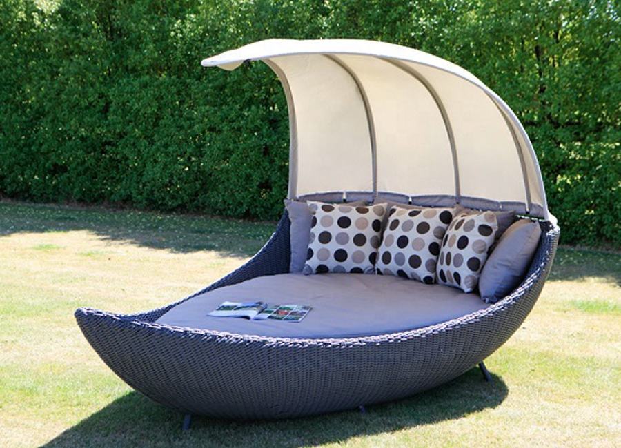 PRSB-075 de mimbre para exteriores, mueble moderno de estilo gris con marco OEM para tumbona de playa