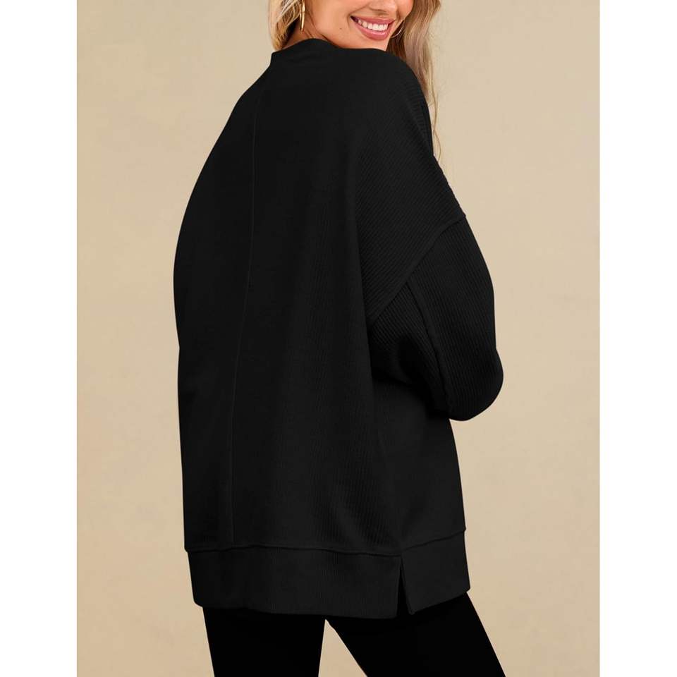 PRTTYGARDEN Sudadera de Mujer, Primavera 2025, Moderna, Casual, Manga Larga, Cuello Redondo, Holgada, con Textura Acanalada