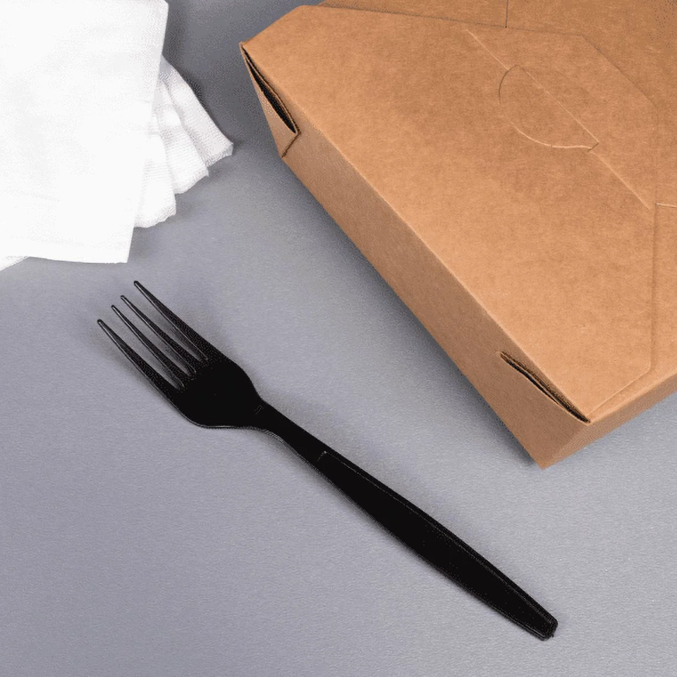 Tenedor Desechable Extra Resistente de Plástico PS Biodegradable y Ecológico, Color Negro, para Fiestas y Uso Doméstico, Richfull S4404, Paquete de Cubiertos