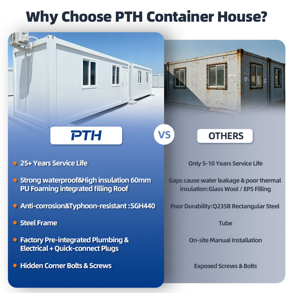 Casa Contenedor Prefabricada PTH Negra de Ensamblaje Rápido, Desmontable, de Alta Calidad, de 20 pies y 40 pies, Mini Casa