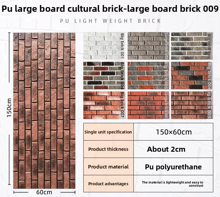 Pegatina de Ladrillo Cultural de PU, Simulación de Revestimiento para Paredes de Restaurantes, Uso Comercial