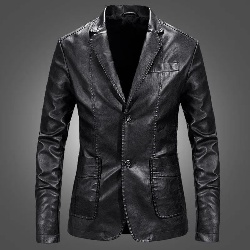 Chaqueta informal de PU para hombre en color sólido abrigo de motociclista con tela de lona de gran tamaño para motociclistas