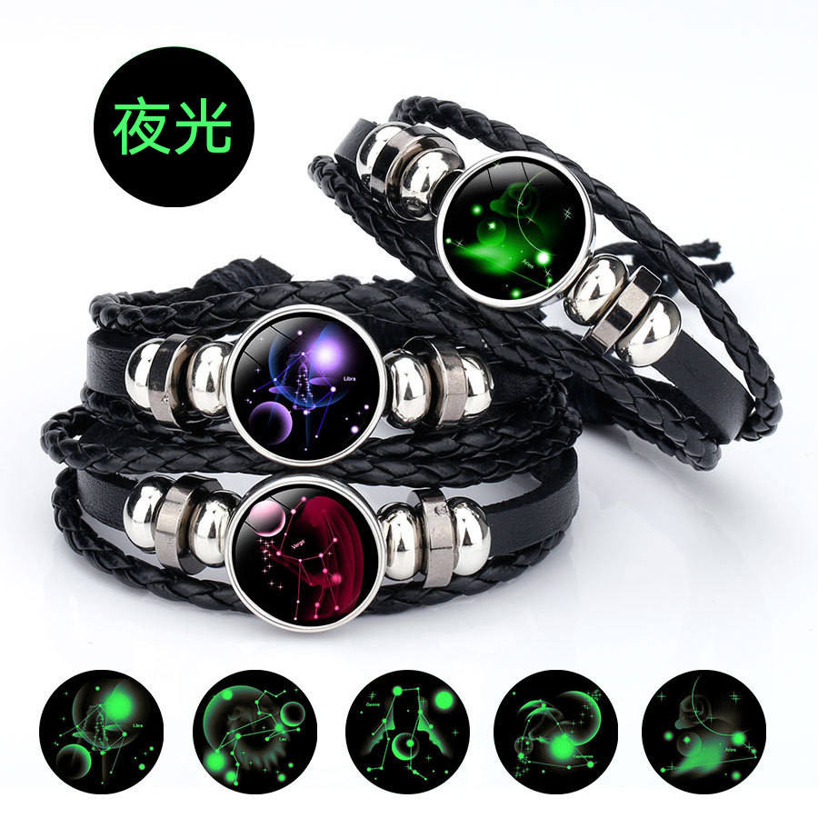 Cuerda de cuero PU Horóscopo luminoso Pulsera Joyería de moda Astrología Chino 12 Signo del zodiaco Pulseras