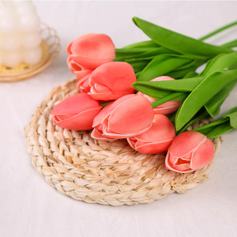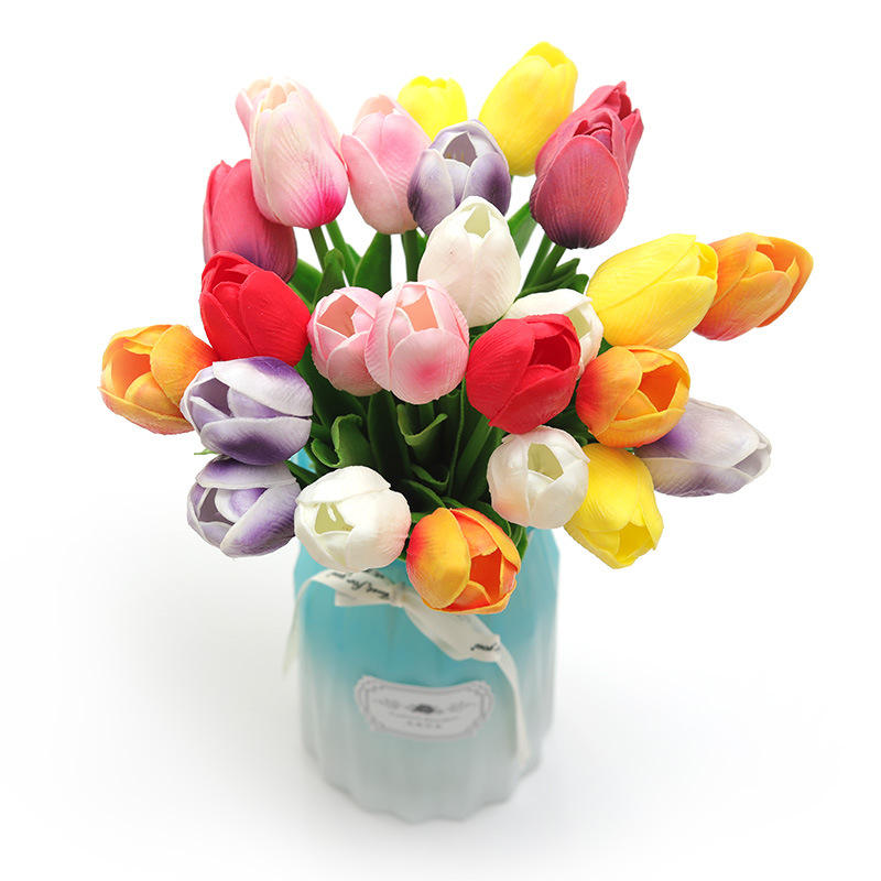 PU feel tulipán sola planta verde flor falsa Estilo nórdico sala de estar decoración tulipán Flor de simulación al por mayor