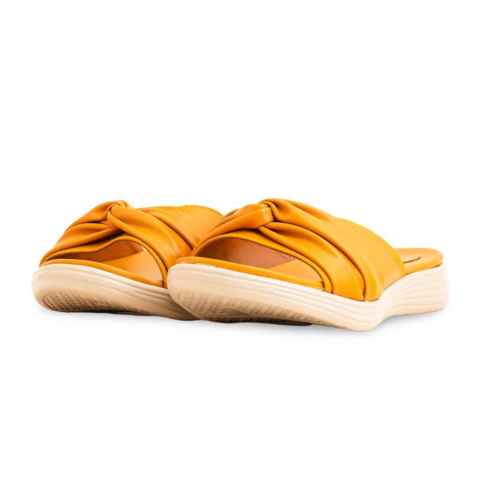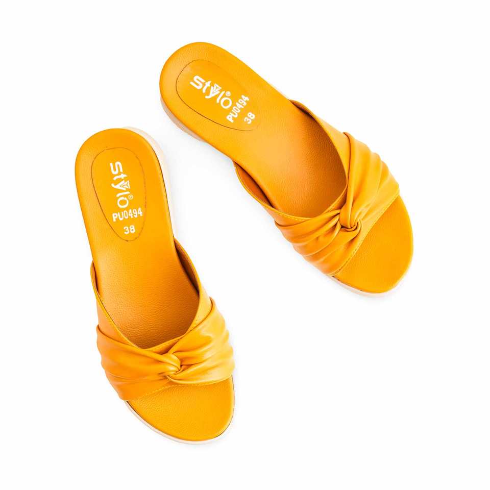 PU0494 Sandalias de tacón formal para mujer Zapatilla mostaza con tacón cómodo