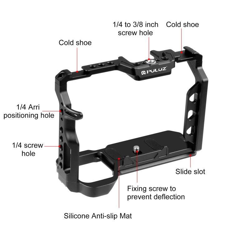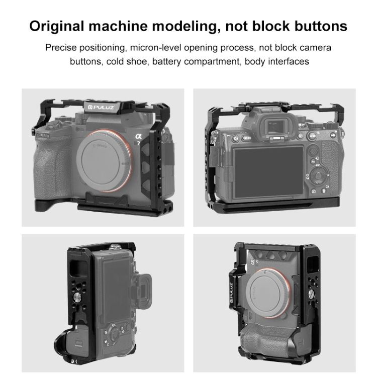 Plataforma estabilizadora de jaula de cámara de Metal más vendida PULUZ para Sony A7 IV/A7M4/A7M3/A7R3/A7R III, plataforma de cámara de acción deportiva negra