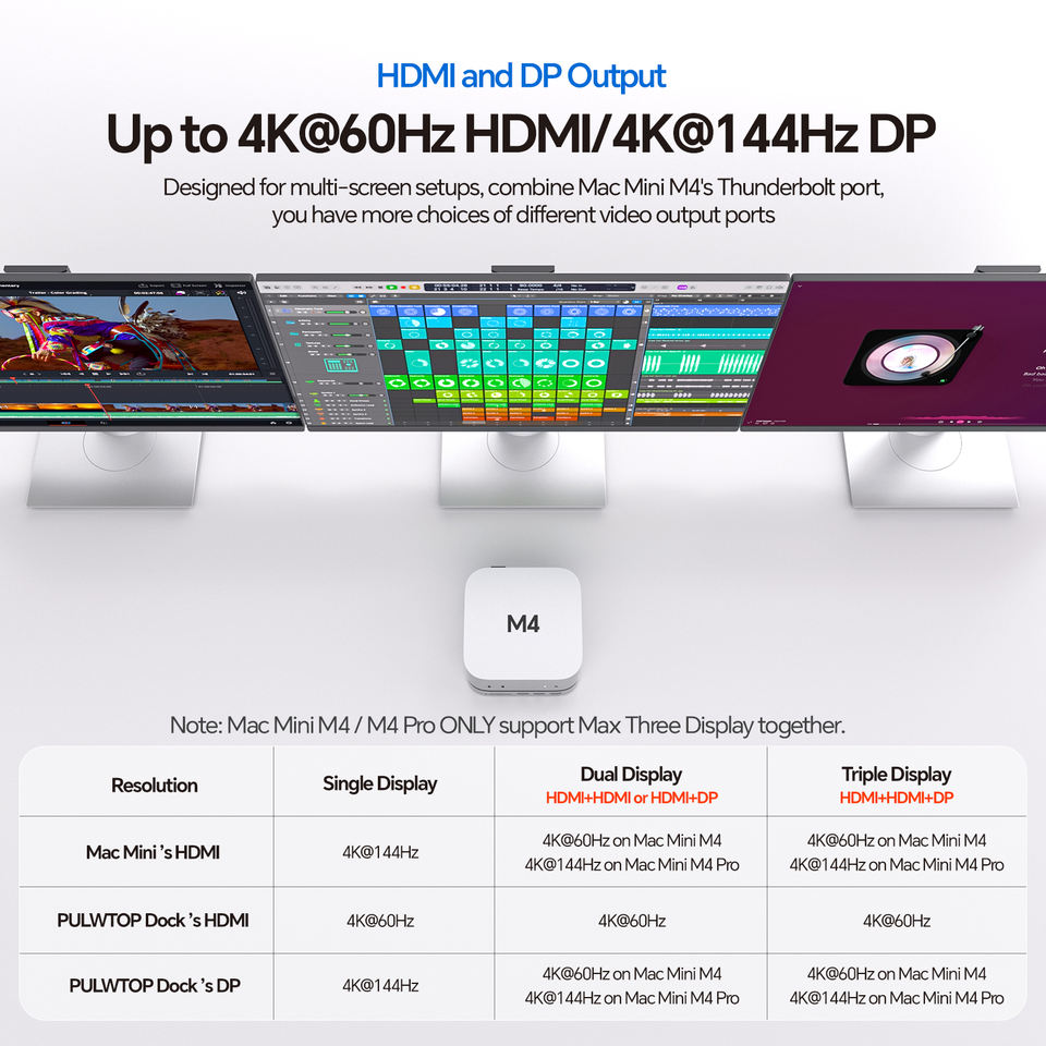 PULWTOP Mac Mini M4 Dock Stand con DP 4K 144Hz y HDMI 4K60, Mac Mini M4 Pro Hub con 4TB NVMe SSD Enclosure (SSD NO incluido)
