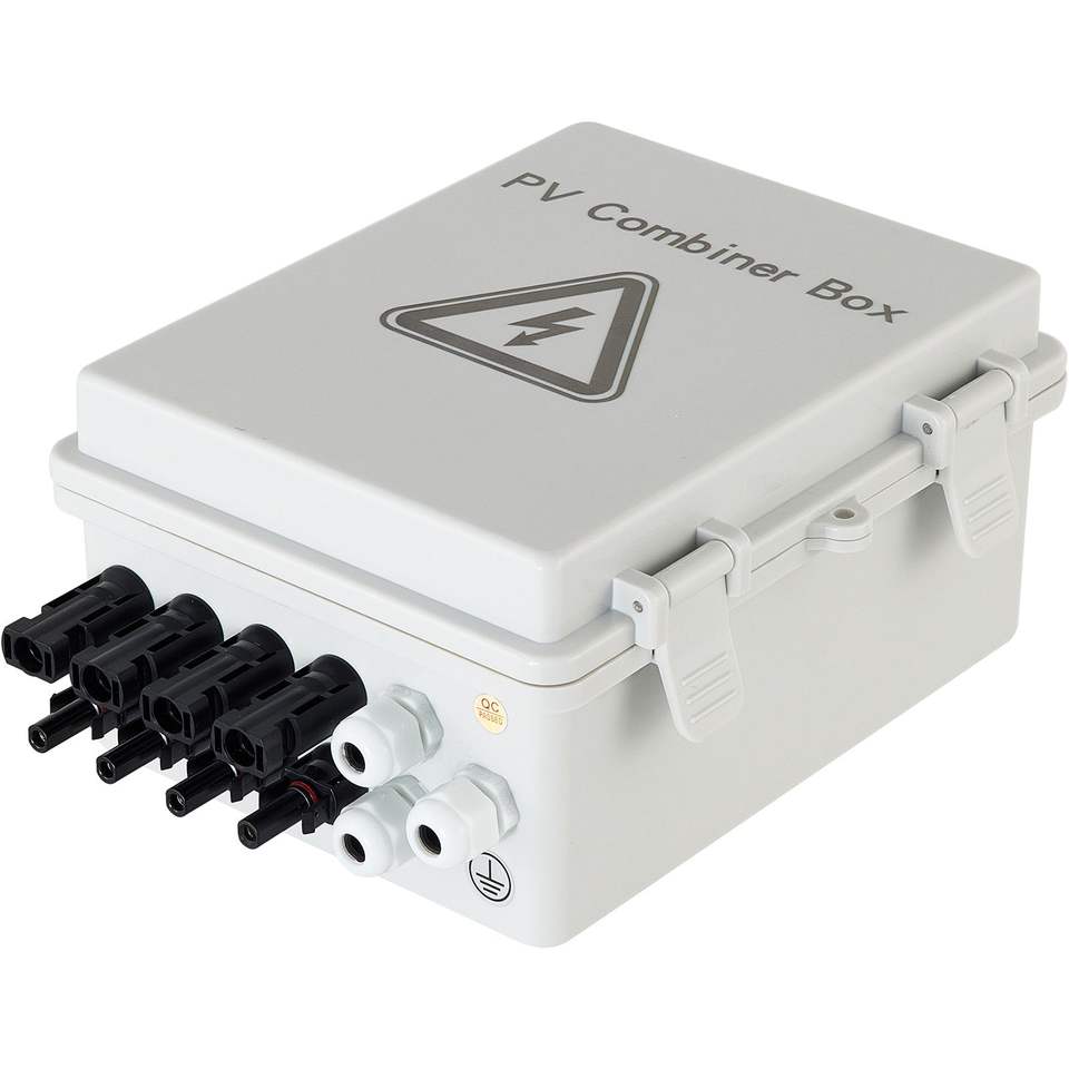 Caja Combinadora FV para Sistemas Solares Conectados/Desconectados a la Red, 4 Cadenas, Fusible de 15A, Interruptor de Circuito de 63A, Protección contra Rayos y Conector de Puesta a Tierra