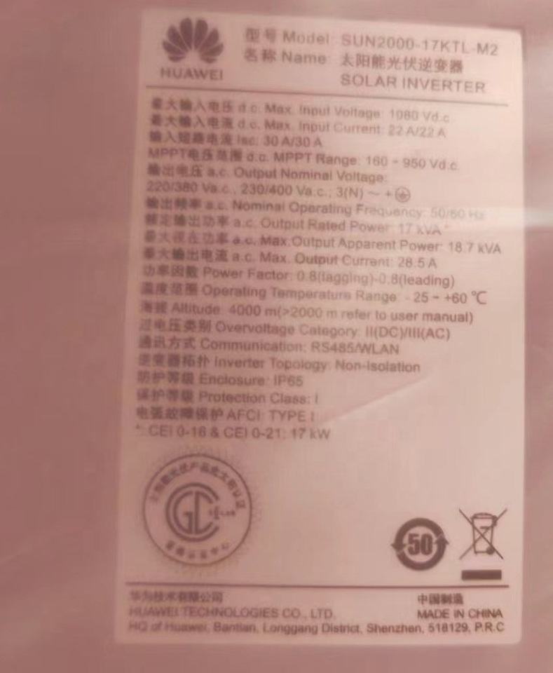 Inversor PV SUN2000-17KTL-M2 MPPT de 4 entradas, dispositivo inteligente, con conector de apilamiento termi-blok de 4 pines