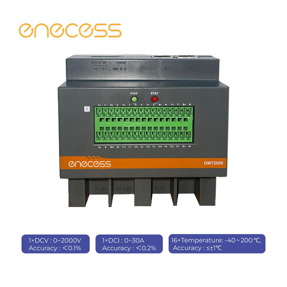 Medidor de CC para Cadenas de Paneles Fotovoltaicos | Analizador de Energía Solar DC para Sistemas Solares | Alta Precisión de 5 ppm | 0-2000V/0-30A | 16 Canales de Temperatura | Montaje DIN | Modbus
