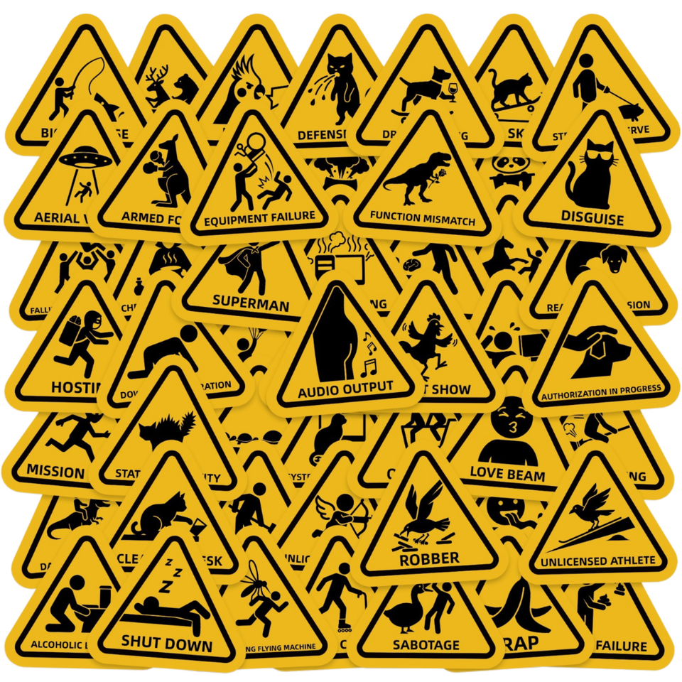 Pegatinas de PVC con Diseño de Dibujos Animados, Advertencia Divertida en Amarillo, para Decoración de Teléfonos, Precaución, Seguridad, Ecológicas
