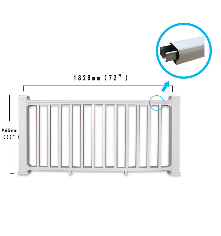 Barandilla de PVC de 3 pies de alto y 6 pies de ancho para balcón