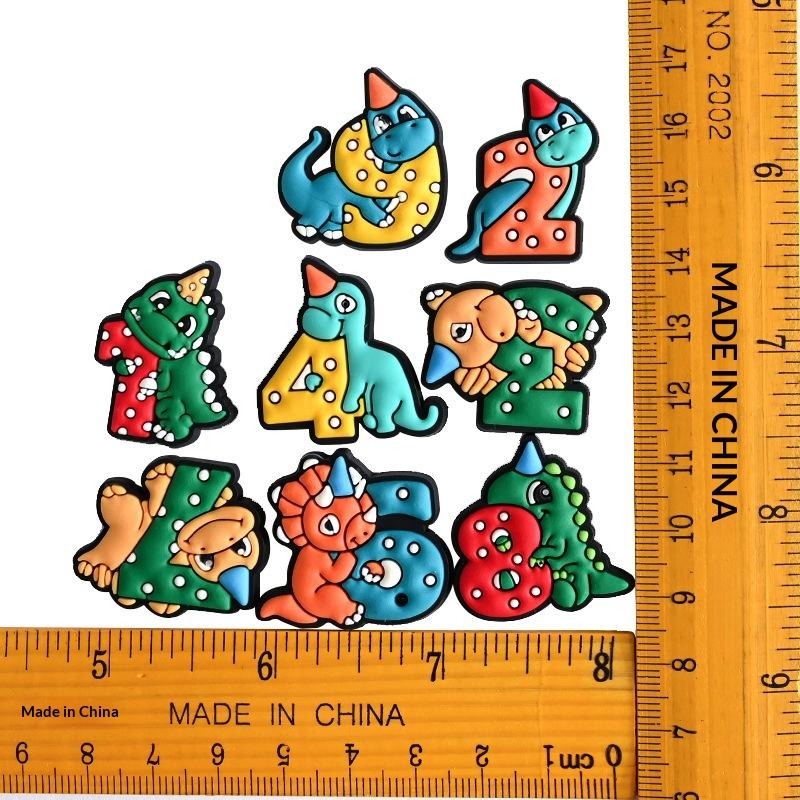 Hebillas Decorativas de Plástico Suave de PVC para Zapatos con Diseños de Dinosaurios de Dibujos Animados y Números, Modelo 402