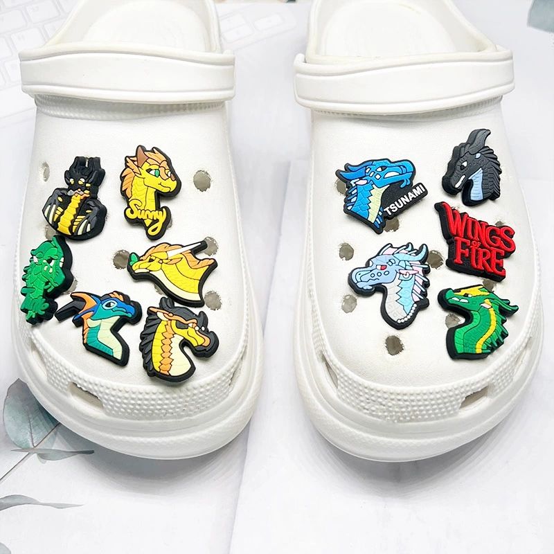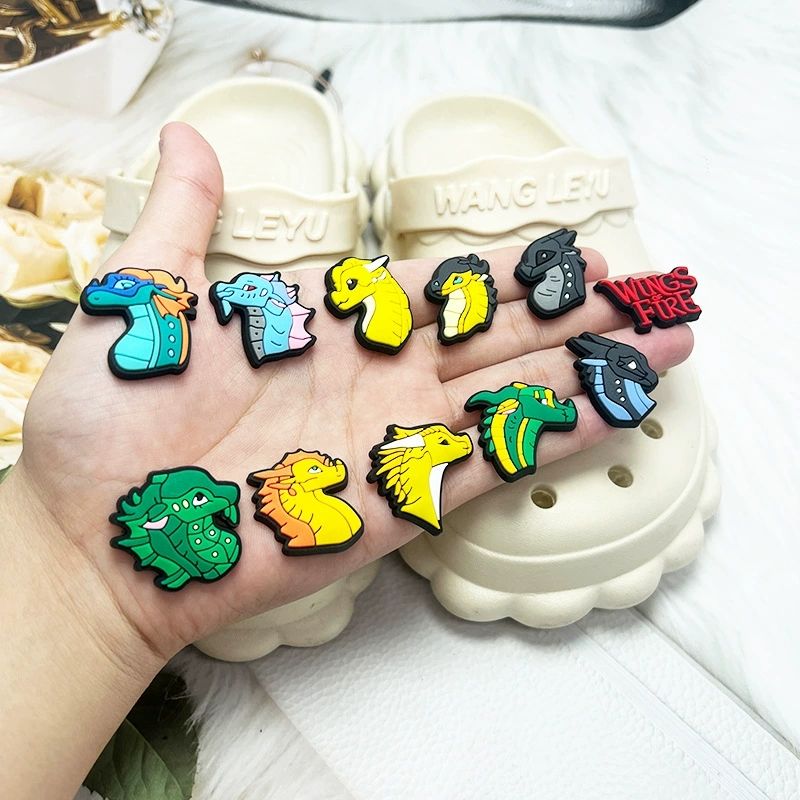 Charm de PVC de goma suave para zapatos, Charm plano para funda de teléfono con diseño de basura, Alas personalizadas DIY, Decoración de zapatos de dragón, Artesanía de resina