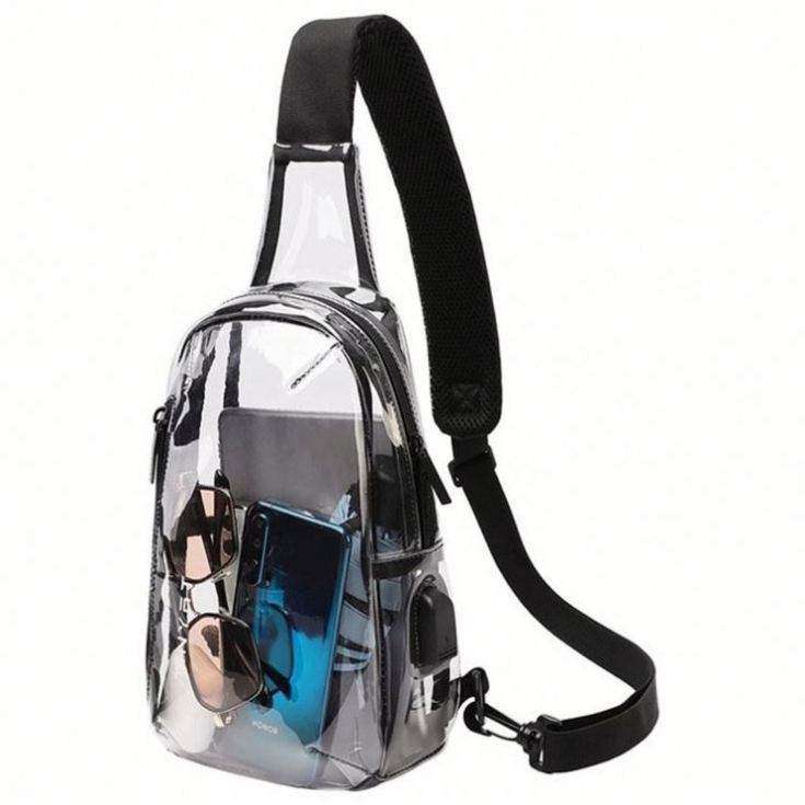 Bolso Bandolera Transparente de PVC con Carga USB, Bolso Deportivo para el Pecho, Bolso Cruzado Casual para Damas y Caballeros