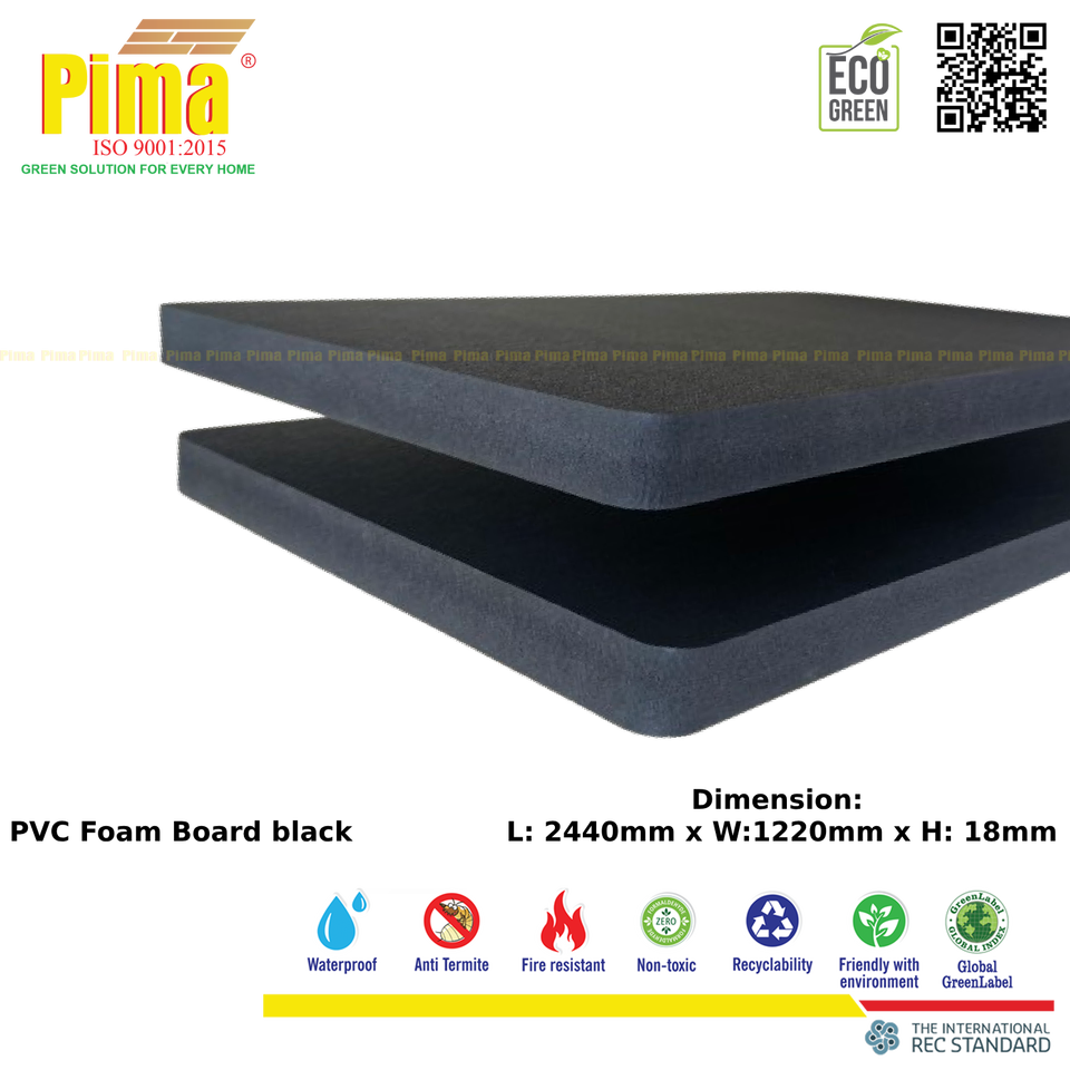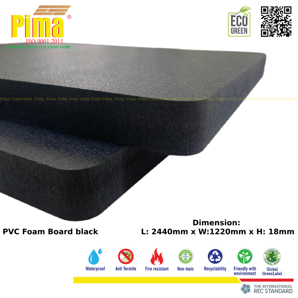 Hoja de tablero de espuma PVC WPC 18mm de espesor 0,6G/cm3 densidad Color negro tableros de plástico resistentes al fuego para frentes de gabinete Cocina