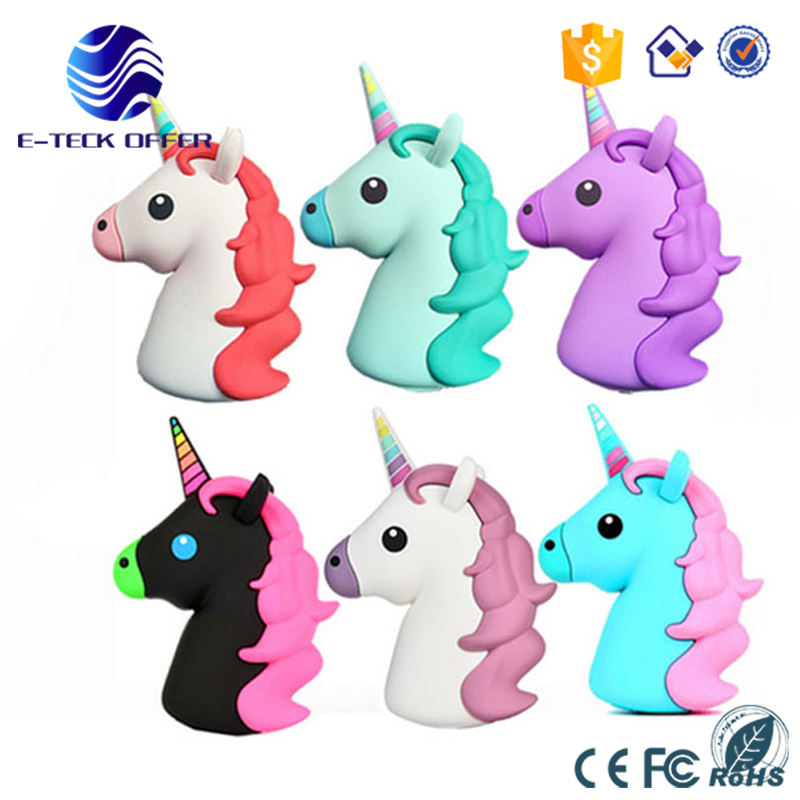 PVC cara sonriente unicornio de dibujos animados lindo de la energía móvil 2600mAh Mini portátil Emoji Banco de la energía