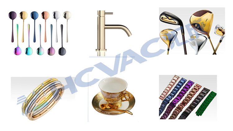 TiN, TiC, TiCN, TiAlN, CrN, Cu, Au, etc.