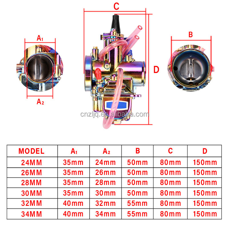 Carburador deslizante plano para motocicleta, pieza Universal colorida de alto rendimiento PWK30 para OKO PWK, 30mm, 2 tiempos, 50cc, Power Jet Carb