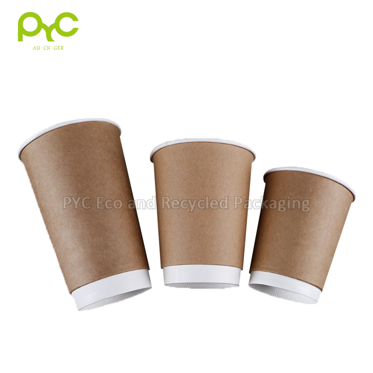 PYC-Tazas de papel empaquetadas para llevar, papel Kraft, doble pared, con tapa