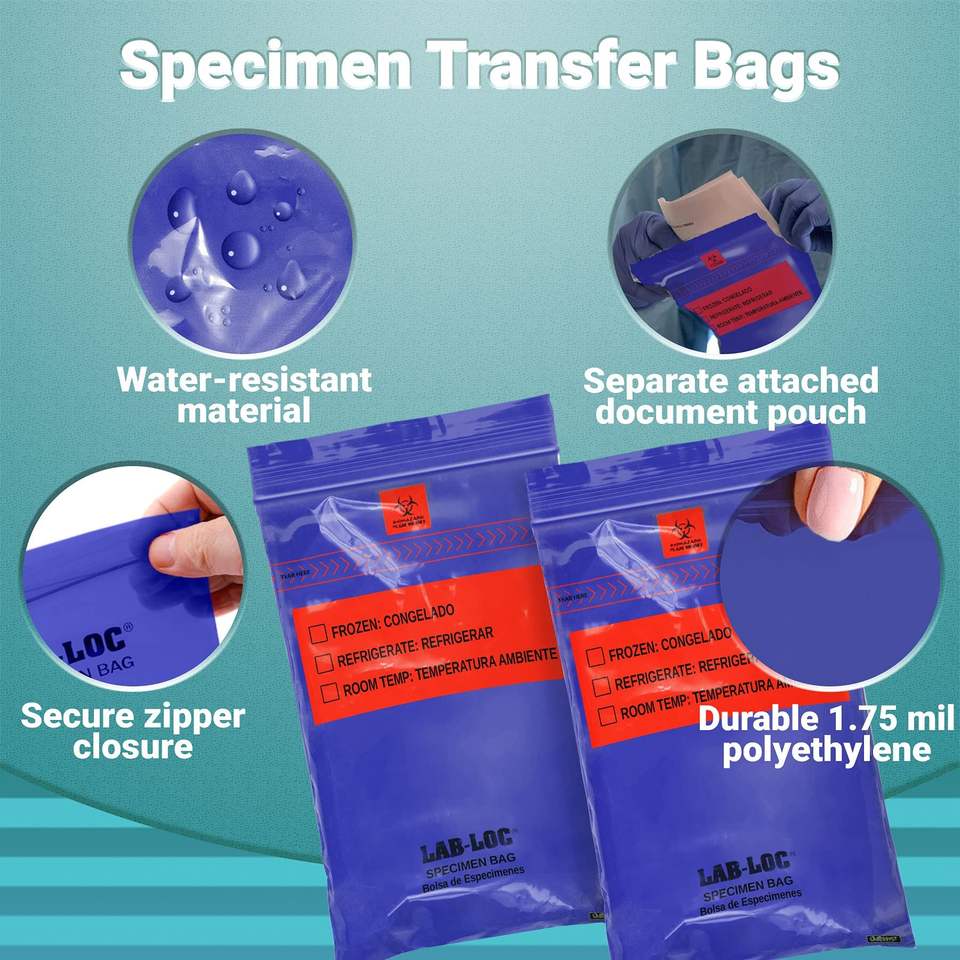 Paquete 1000 Polietileno de baja densidad Impreso 6x9 Azul Biohazard Espécimen Bolsas de transferencia 1,75 Mil para necesidades de salud para enfermerías