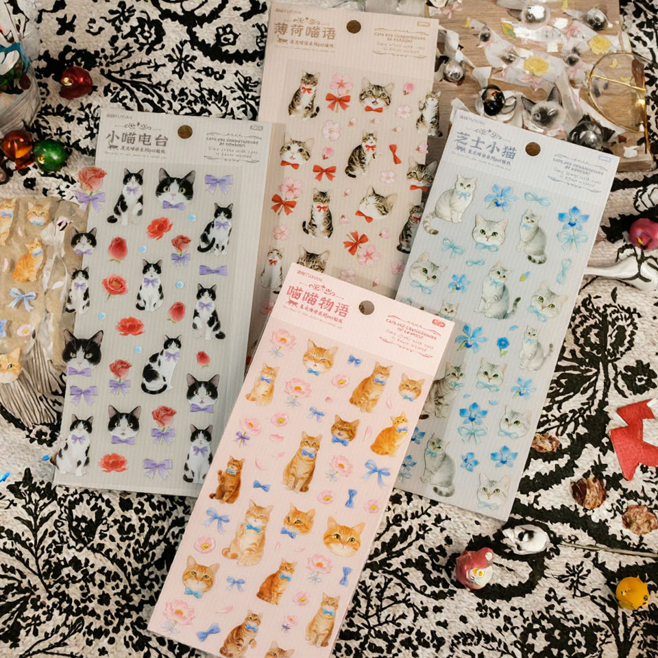 Paquete 2 pegatinas impermeables para mascotas lindo patrón de gato 'Starlight Meow Talk' para cuadernos decorativos DIY decoraciones navideñas para teléfonos