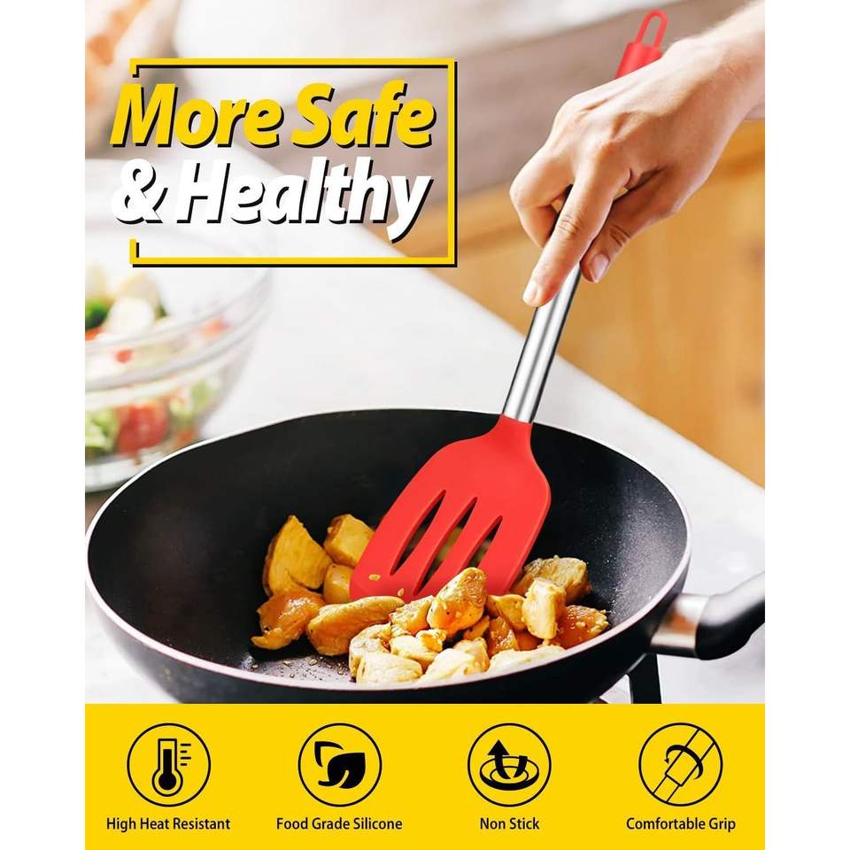 Juego de 4 utensilios de cocina de silicona antiadherentes, cucharas ranuradas resistentes al calor, espátulas grandes y sólidas, accesorios de cocina sin BPA