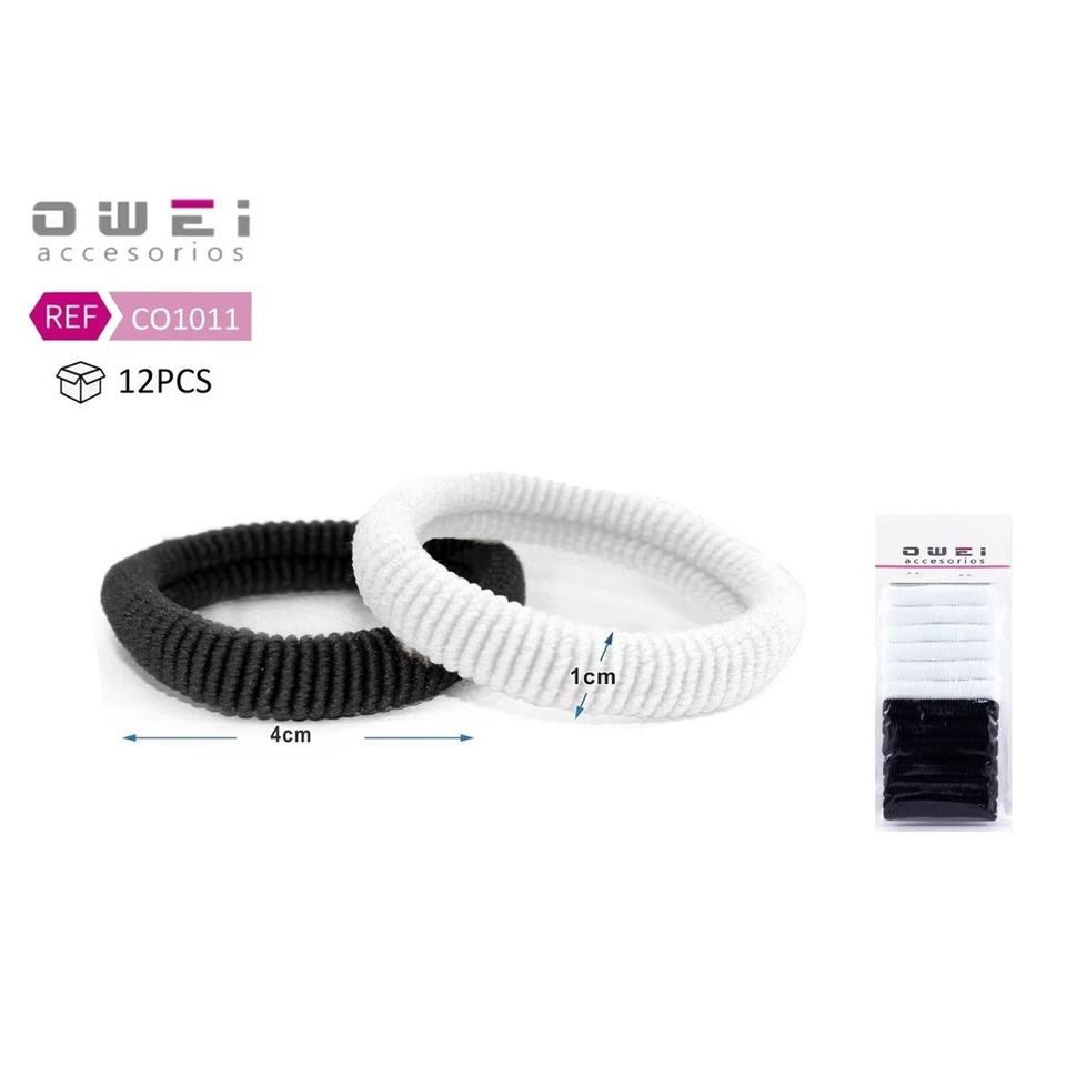 Pack de 12 gomas blancas y negras CO1011 OW-Accesorios para el cabello y la moda