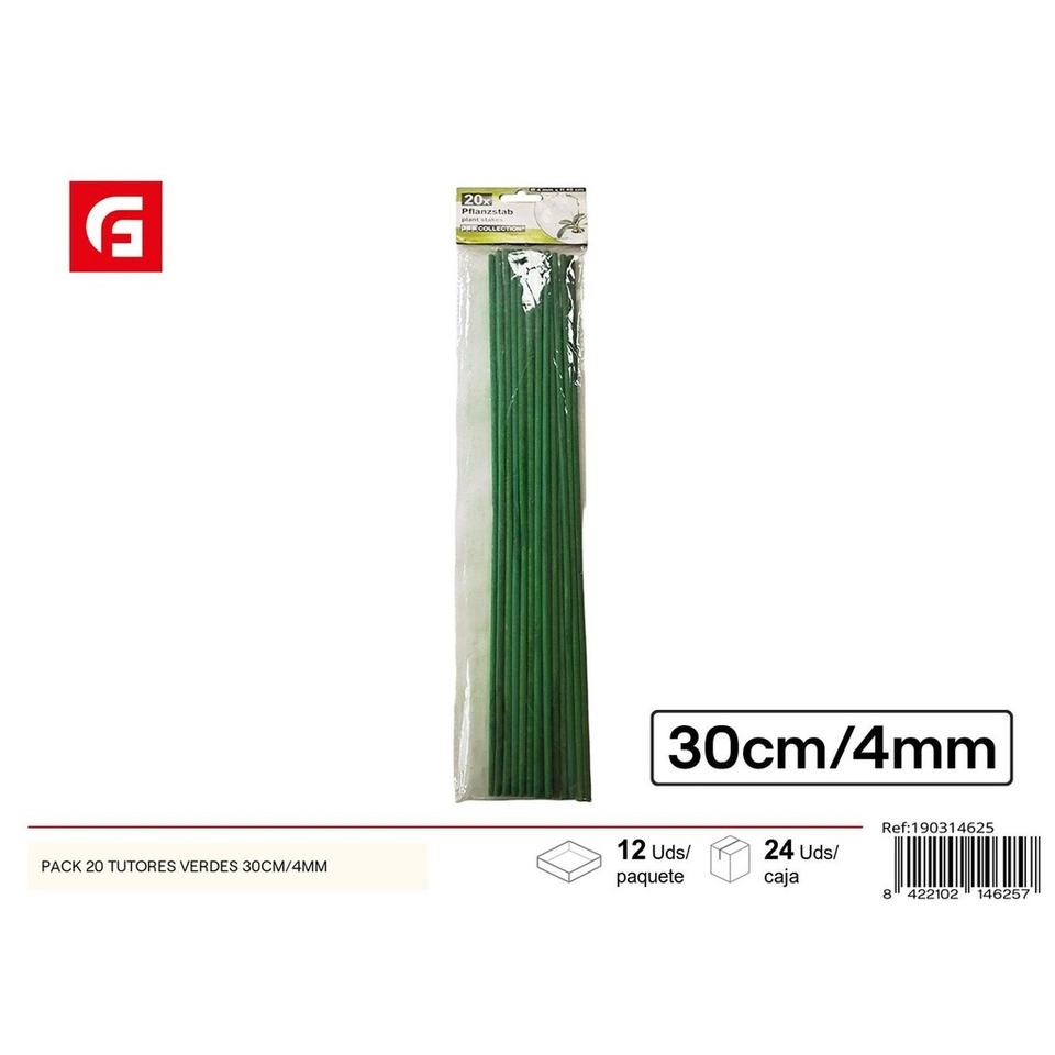 Pack de 20 estacas verdes 30 cm/4mm-Soporte compacto para plantar