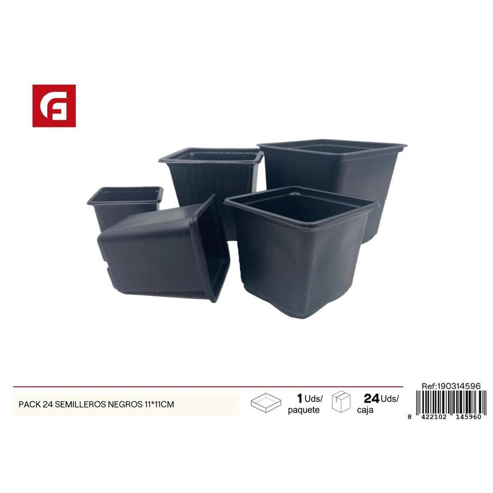 Paquete de 24 bandejas de semillas negras 11x11cm-Jardinería