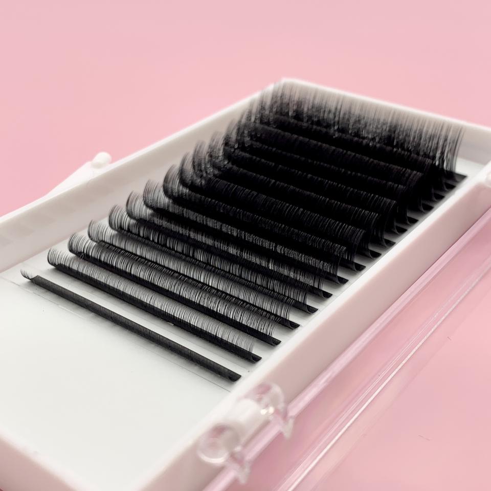 Paquete de pestañas Full Curl Box 12 Line Korean PBT Fiber Lash Fans Extensiones de pestañas de longitud completa Ultra Dark