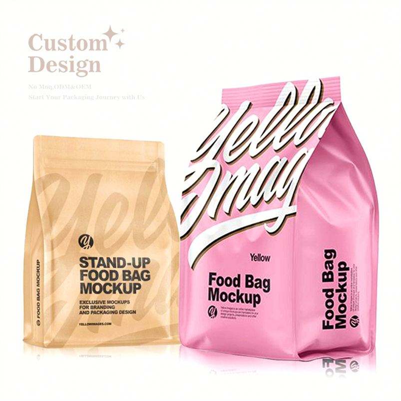 Embalaje para bolsa de café compostable de papel Kraft de fondo plano con válvula y cremallera Bolsas Para embalaje de café