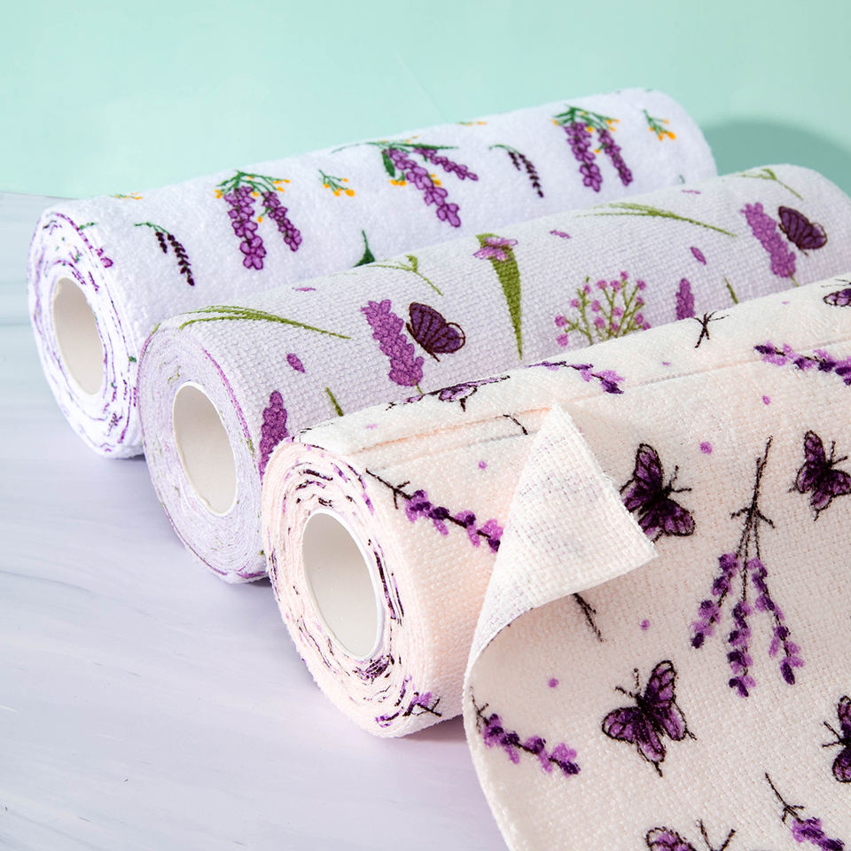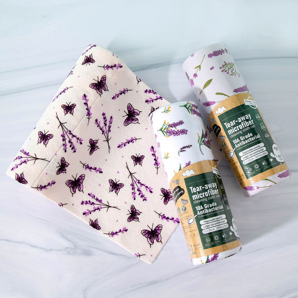 Rollo de Toallas de Microfibra Multiusos con Diseño de Lavanda, Absorbente, Reemplazable Semanalmente, para Limpieza de Cocina