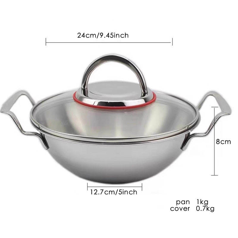 Sartén para paella, sartén para paella de acero inoxidable de 9,4 pulgadas adecuada para todas las estufas, incluida la inducción, 24CM