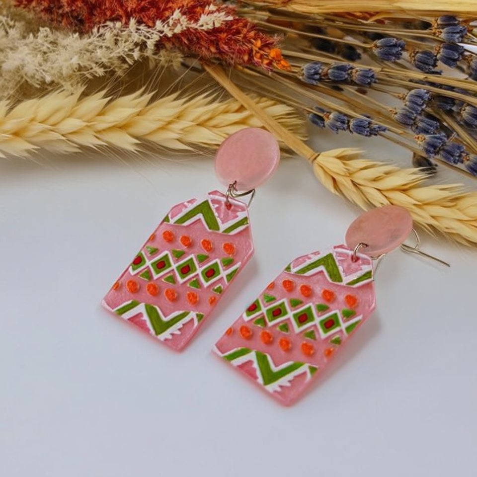Pendientes con diseño geométrico pintado, resina acrílica rosa y verde, estilo bohemio para fiesta, moda femenina