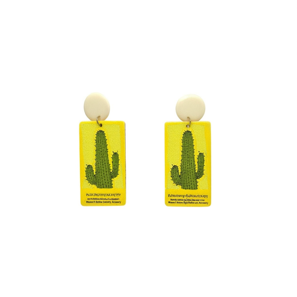 Pendientes rectangulares pintados de Angelina, pendientes colgantes con diseño de cactus amarillo y verde, joyería de moda de estilo bohemio para mujer