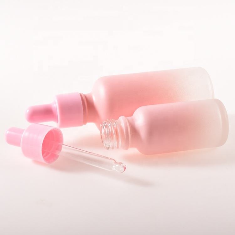 Botella de vidrio de aceite de esencia cosmética de color rojo degradado de pintura con botella cuentagotas de goma Rosa 5ml 10ml 20ml 50ml 100ml