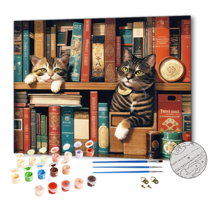Pinturas por números Tamaños grandes Dos gatos en la estantería Pintura por números Decoración de muebles para el hogar