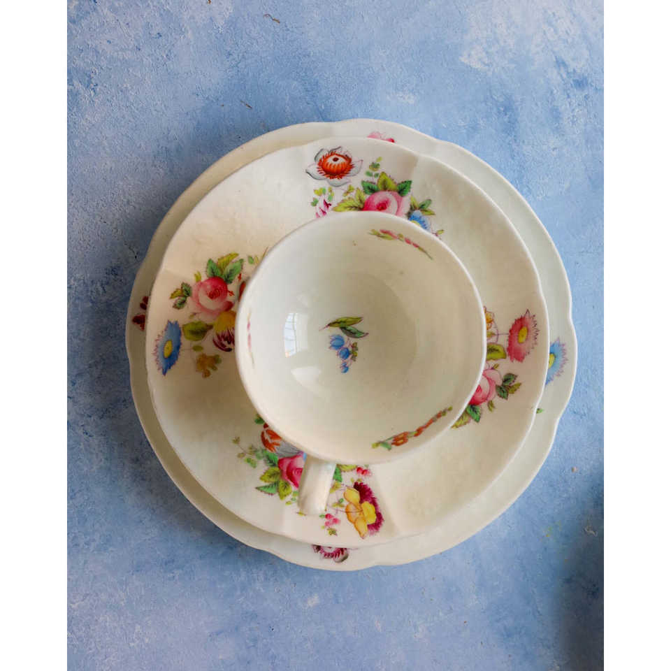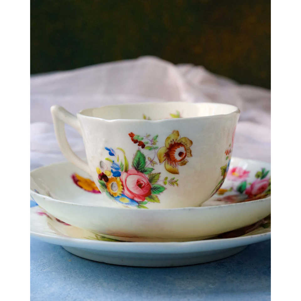 Juego de Tazas de Porcelana Inglesa Decoradas a Mano, Color Blanco con Rosas, con Tetera de Cerámica, Platillo y Cuchara para Hoteles