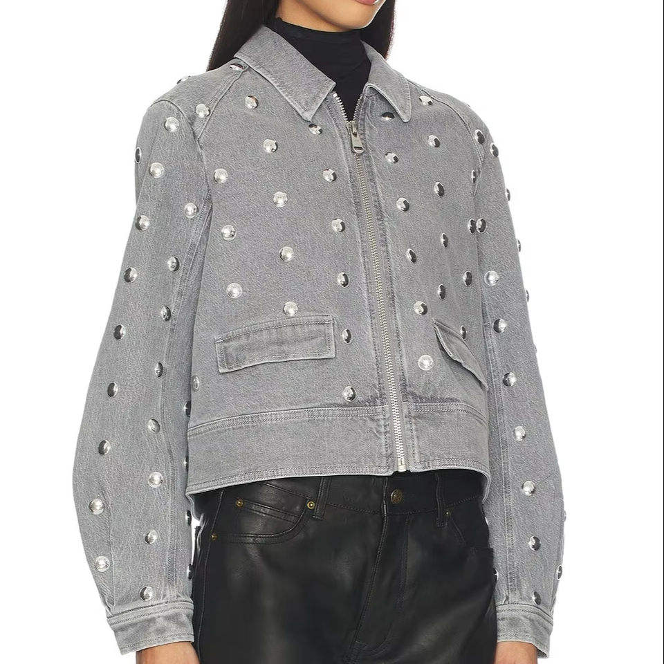 Chaqueta Vaquera de Alta Calidad Hecha en Pakistán, Informal de Invierno, con Cuello Alto, Cremallera, Talla Grande, Resistente al Viento, Transpirable, Lisa/con Puntos, Ecológica